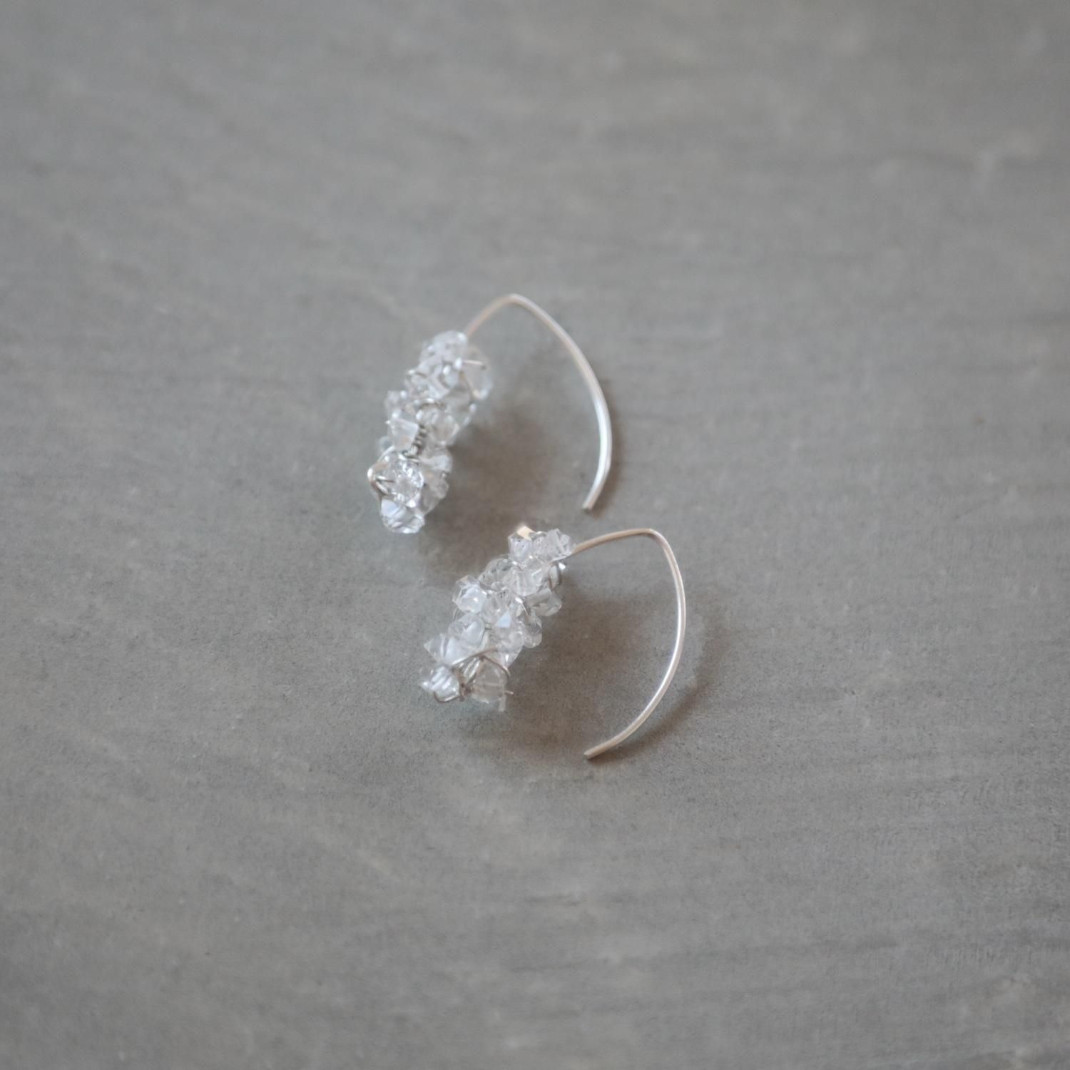 小さなダイヤモンドクオーツの粒が連なる、上品な印象のシルバーピアスです。