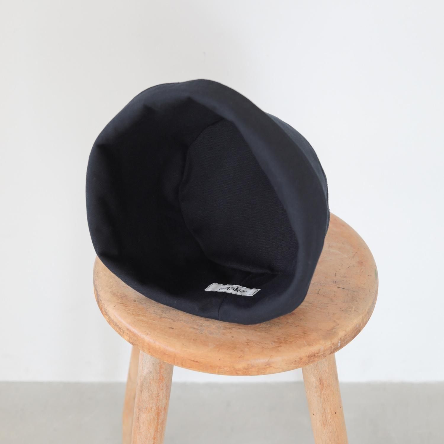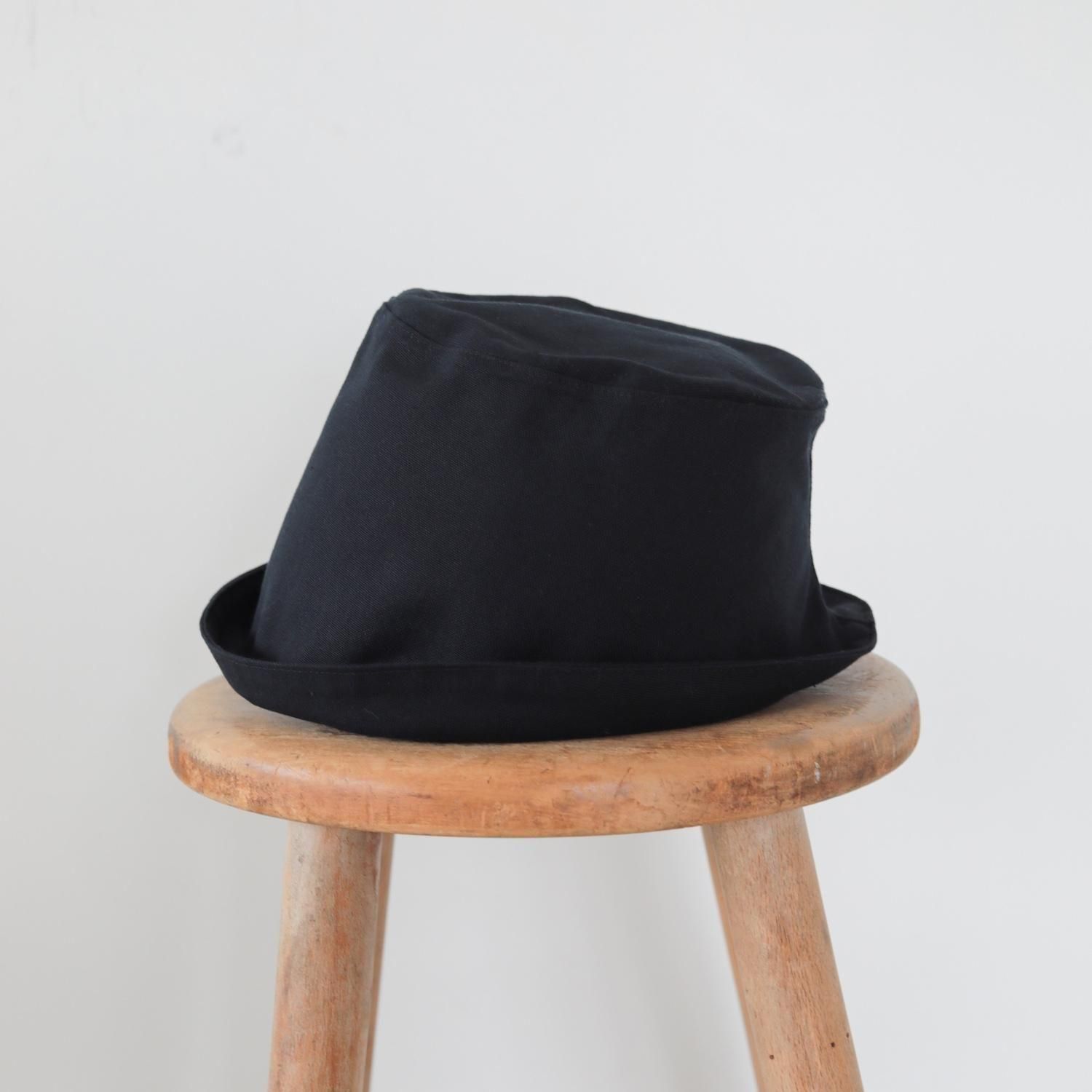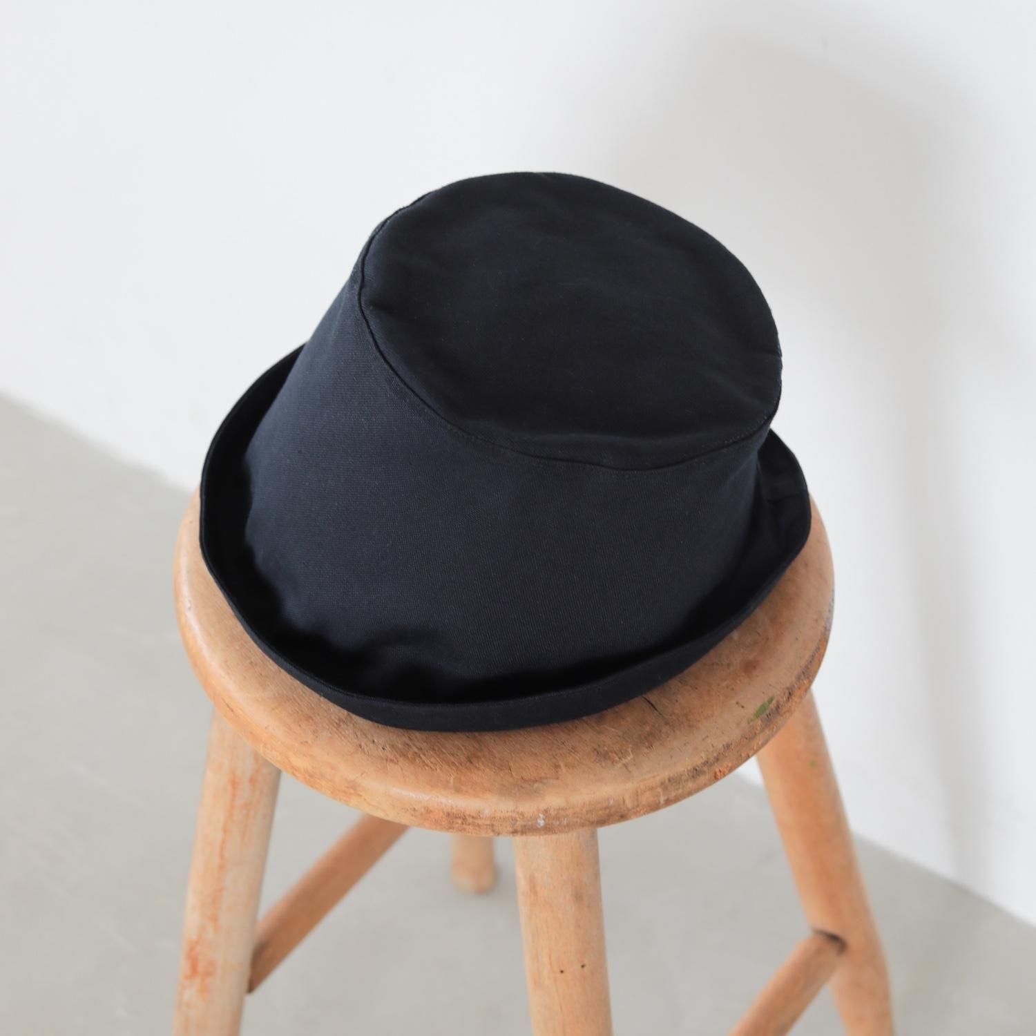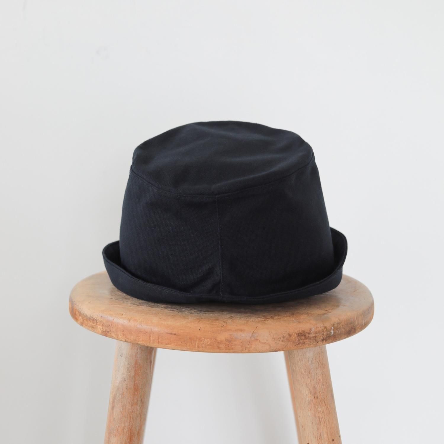 ポークハットの特徴である、低く平らなクラウン(頭の部分)と、くるんと上がった狭めのブリム(つば)をバケツ型にアレンジ。クラウンとブリムの境目がなく、自然な丸みのあるフォルムが魅力です。