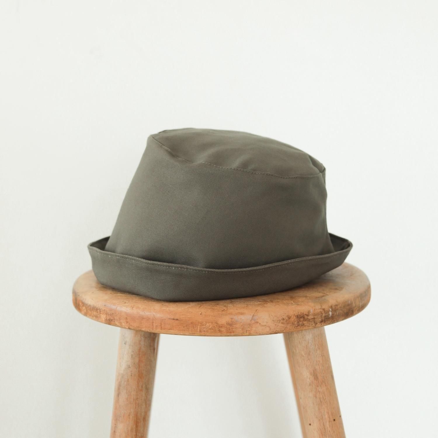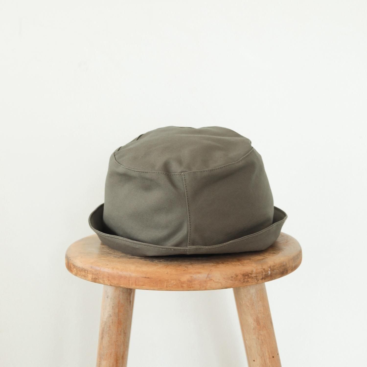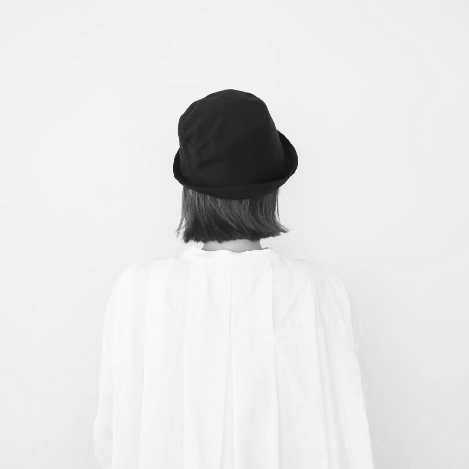 ポークハットの特徴である、低く平らなクラウン(頭の部分)と、くるんと上がった狭めのブリム(つば)をバケツ型にアレンジ。クラウンとブリムの境目がなく、自然な丸みのあるフォルムが魅力です。