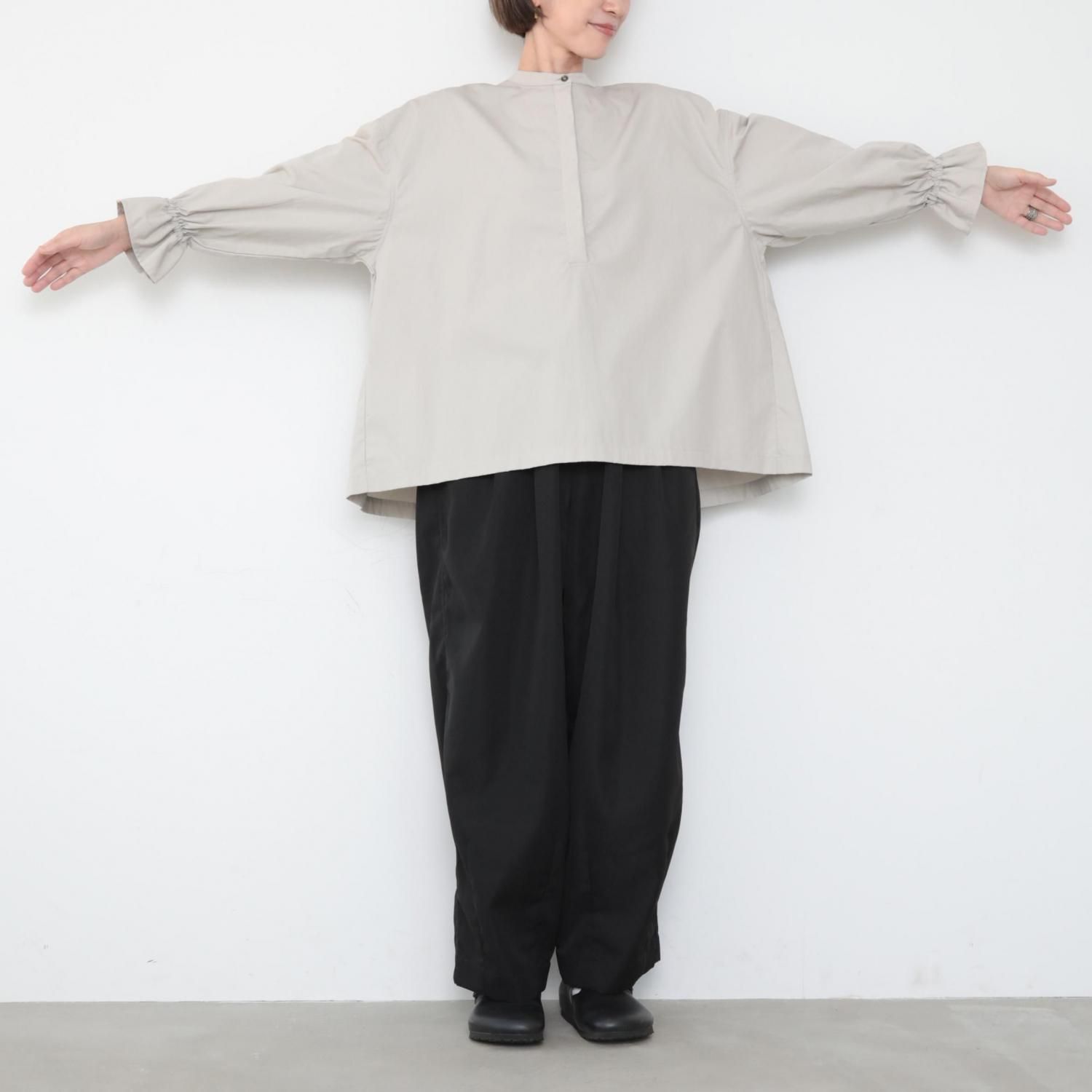 袖口はゴム仕様になっているので、たくし上げた時にちょうど良い位置で止まって便利。少しまくってふんわりとさせれば、女性らしい抜け感が生まれます。袖丈はその着こなしを楽しめるよう、やや長めにデザインしました。