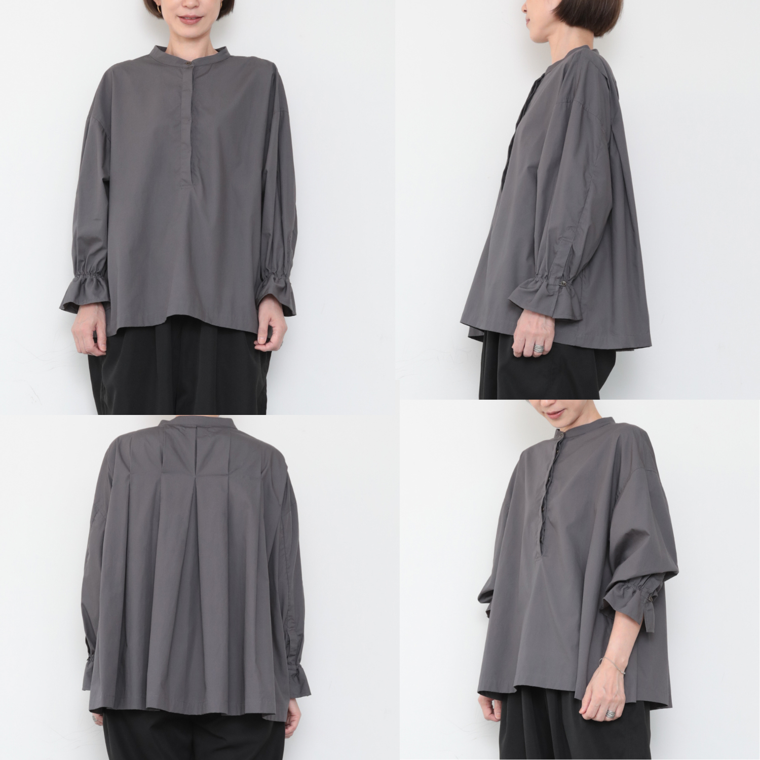 袖口はゴム仕様になっているので、たくし上げた時にちょうど良い位置で止まって便利。少しまくってふんわりとさせれば、女性らしい抜け感が生まれます。袖丈はその着こなしを楽しめるよう、やや長めにデザインしました。