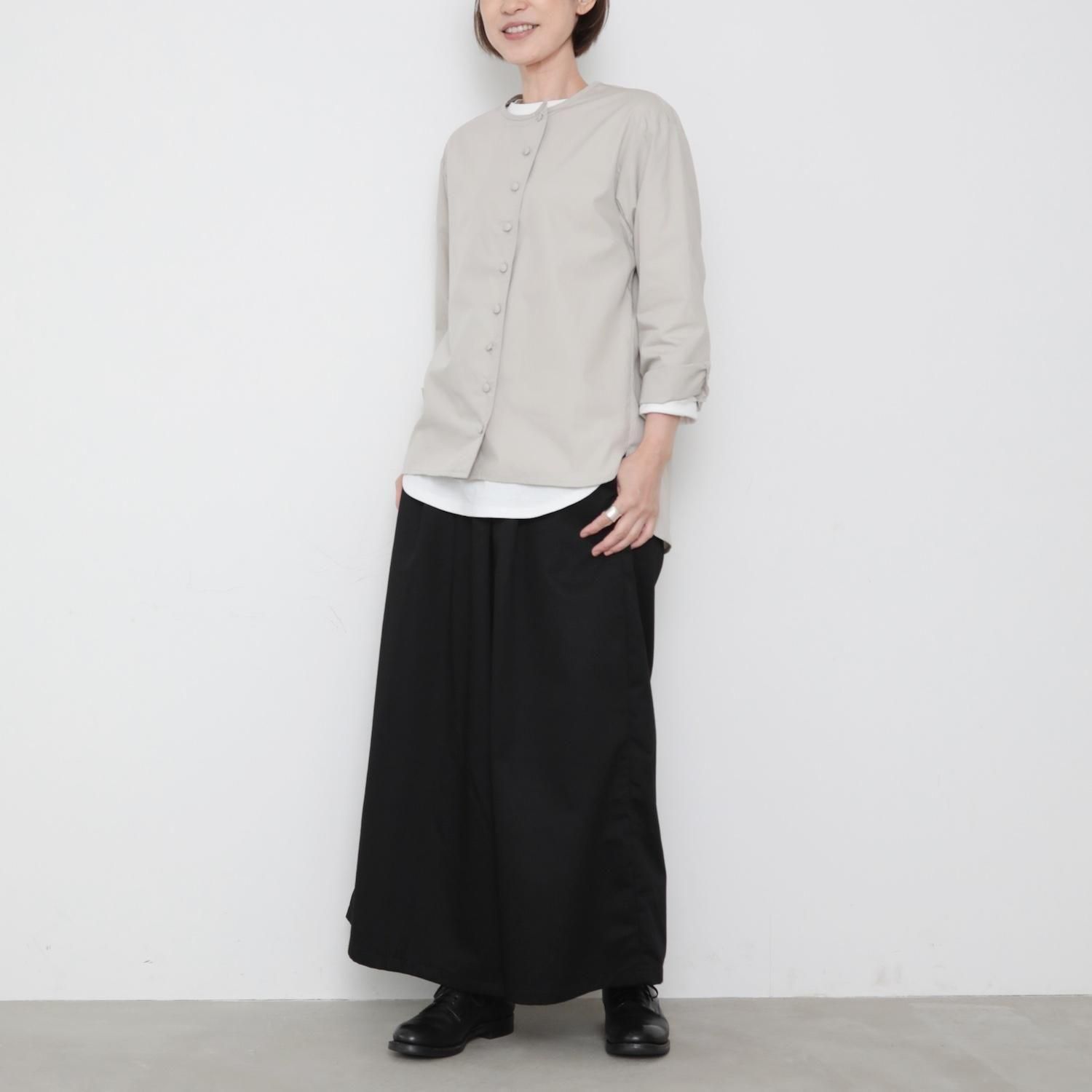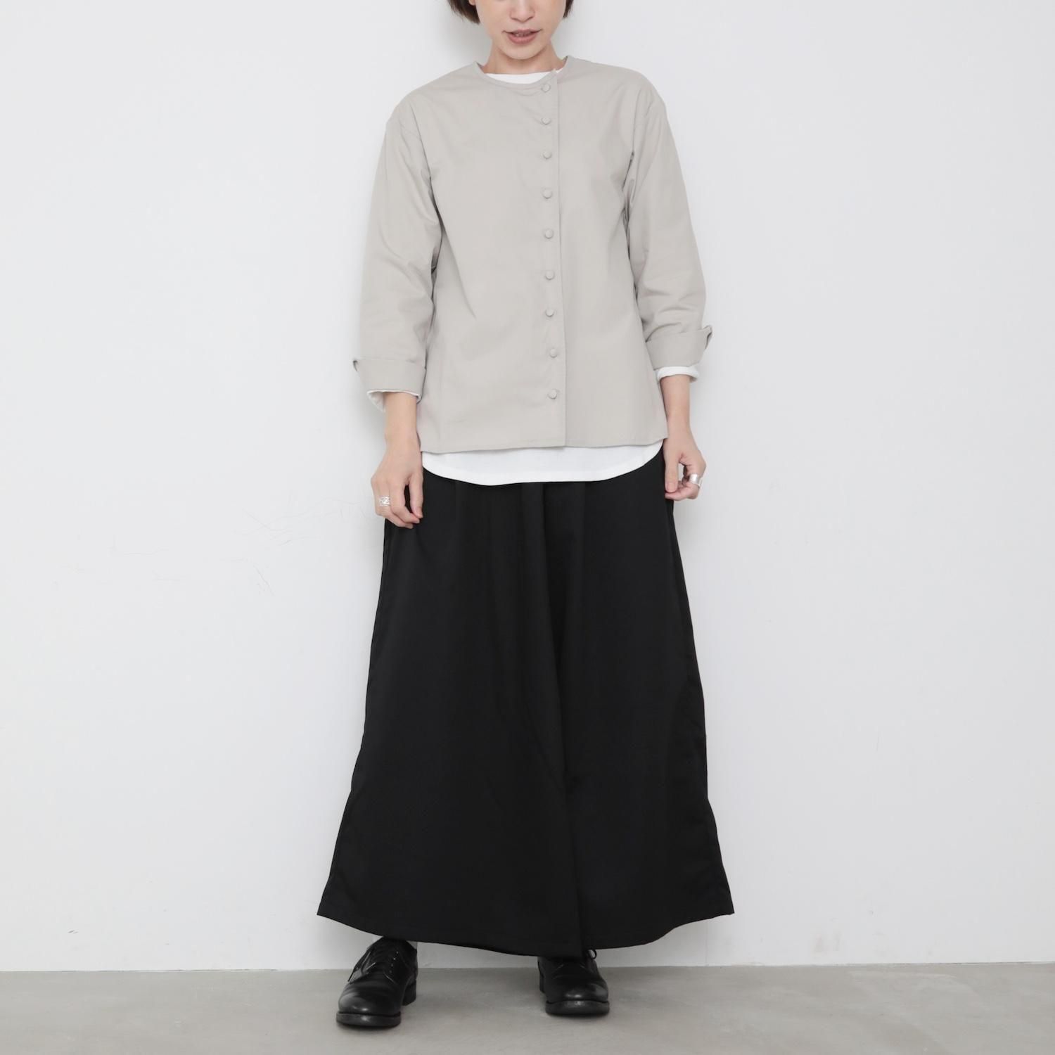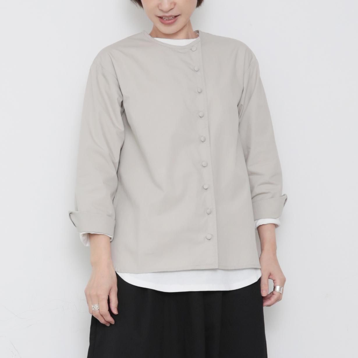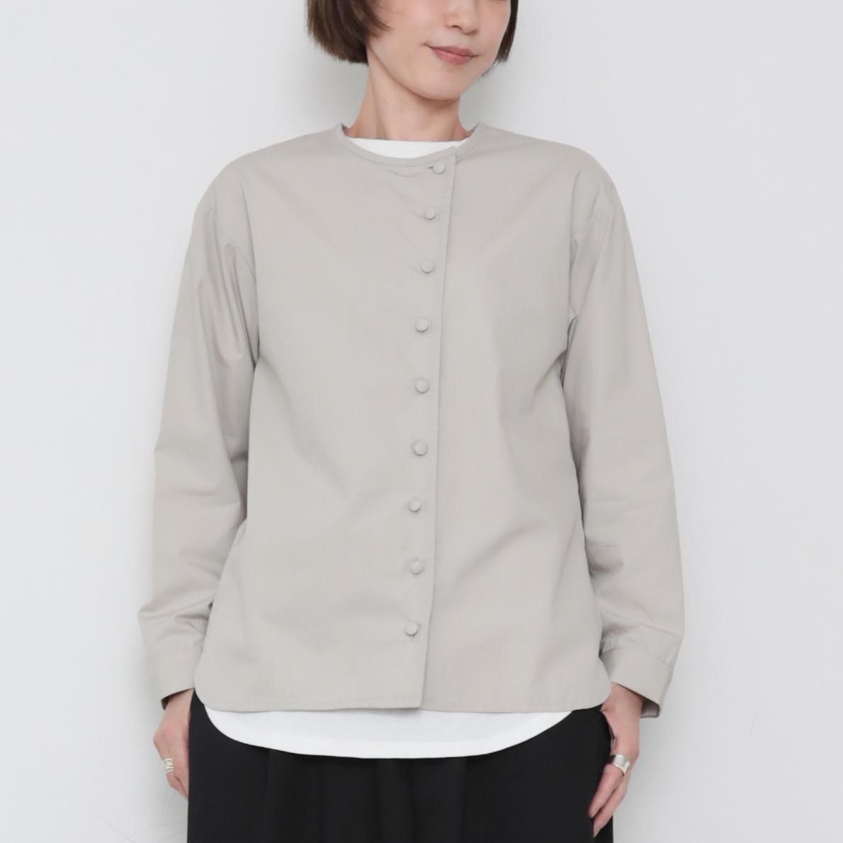 ストールを巻く機会が増える季節に合わせて、襟元はノーカラーに。