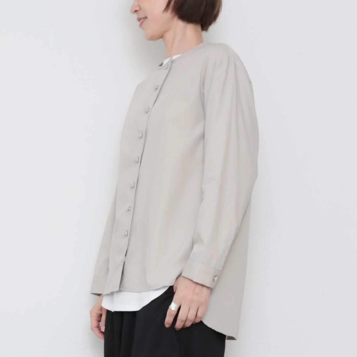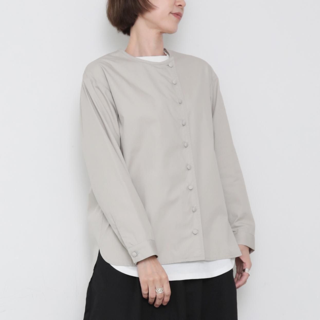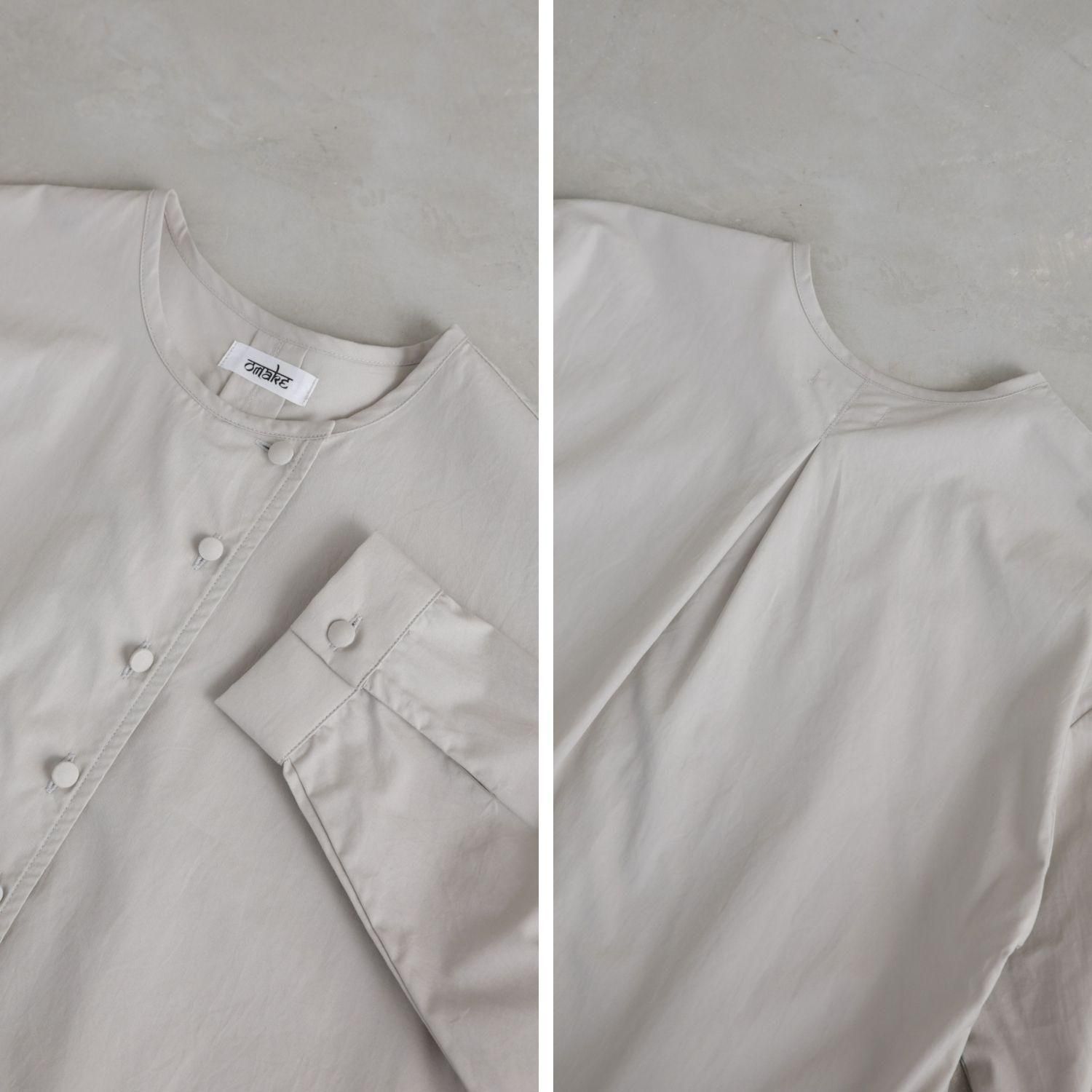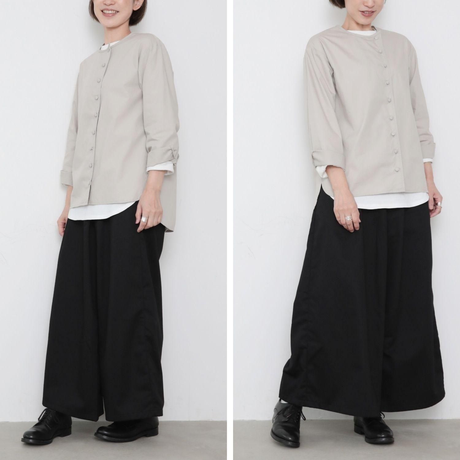 ストールを巻く機会が増える季節に合わせて、襟元はノーカラーに。