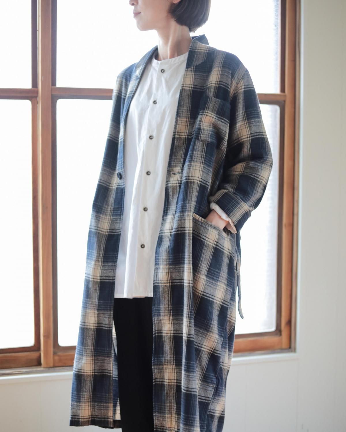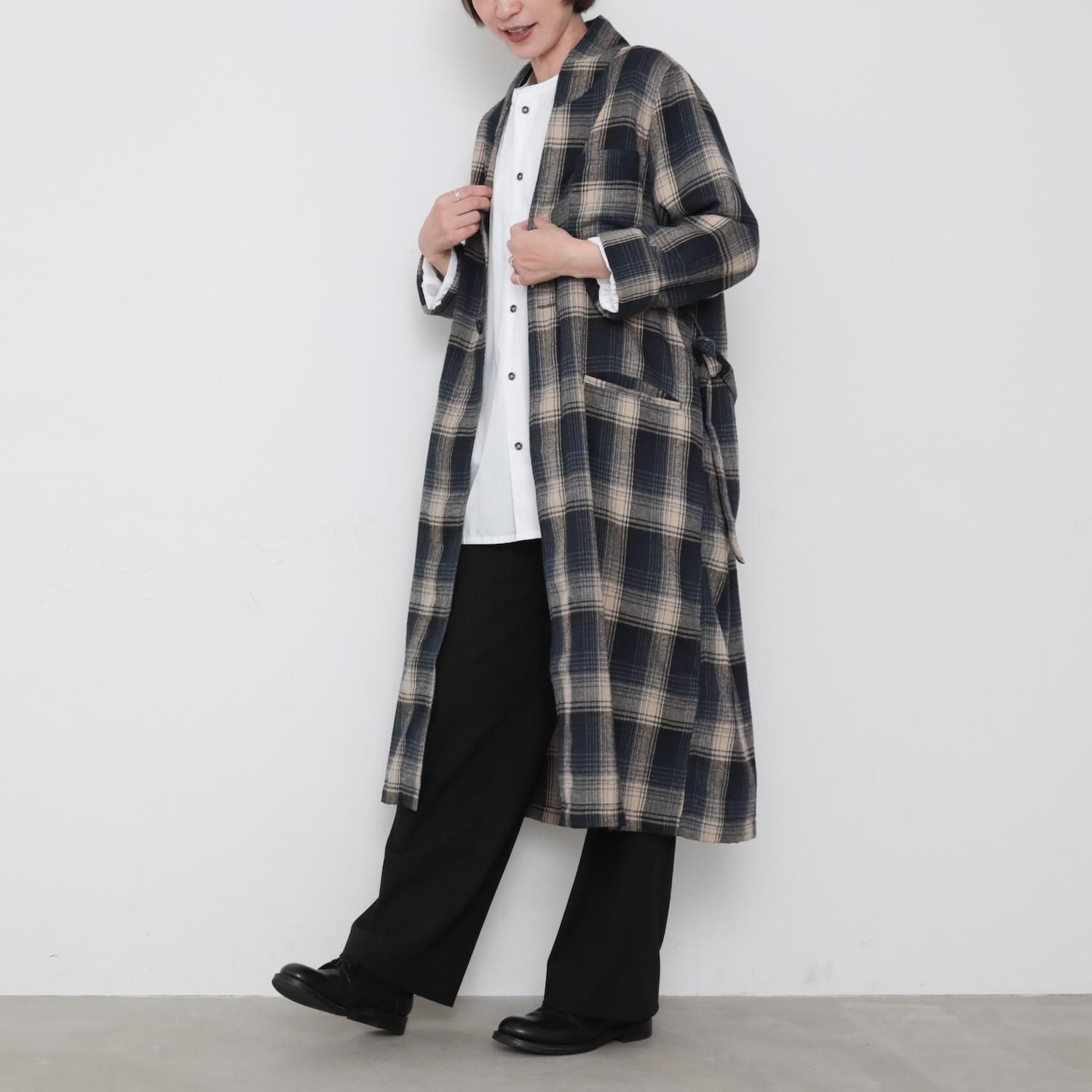 ユニセックスで楽しめるロングカーディガン風ガウン 。