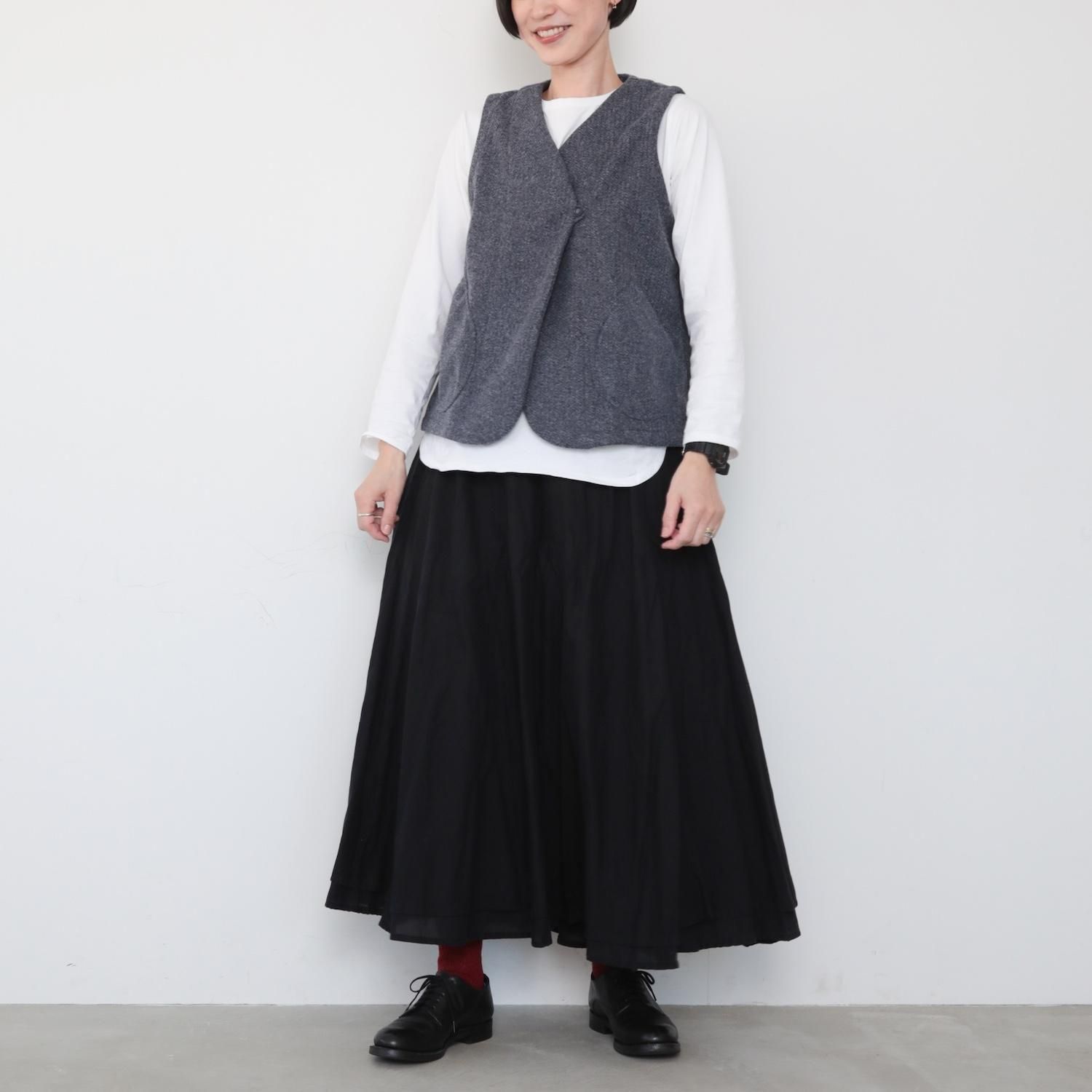 マキシスカートやシャツとの相性も良く、ワンピースに重ねてもバランス良くまとまります。