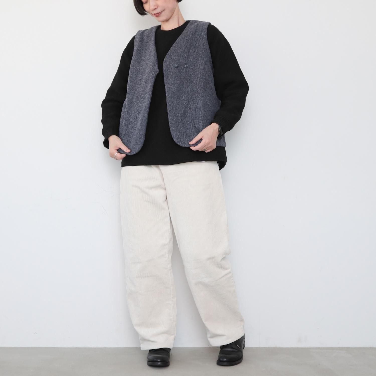 シンプルなデザインなので、ベストが初めての方にも取り入れやすい一枚です。