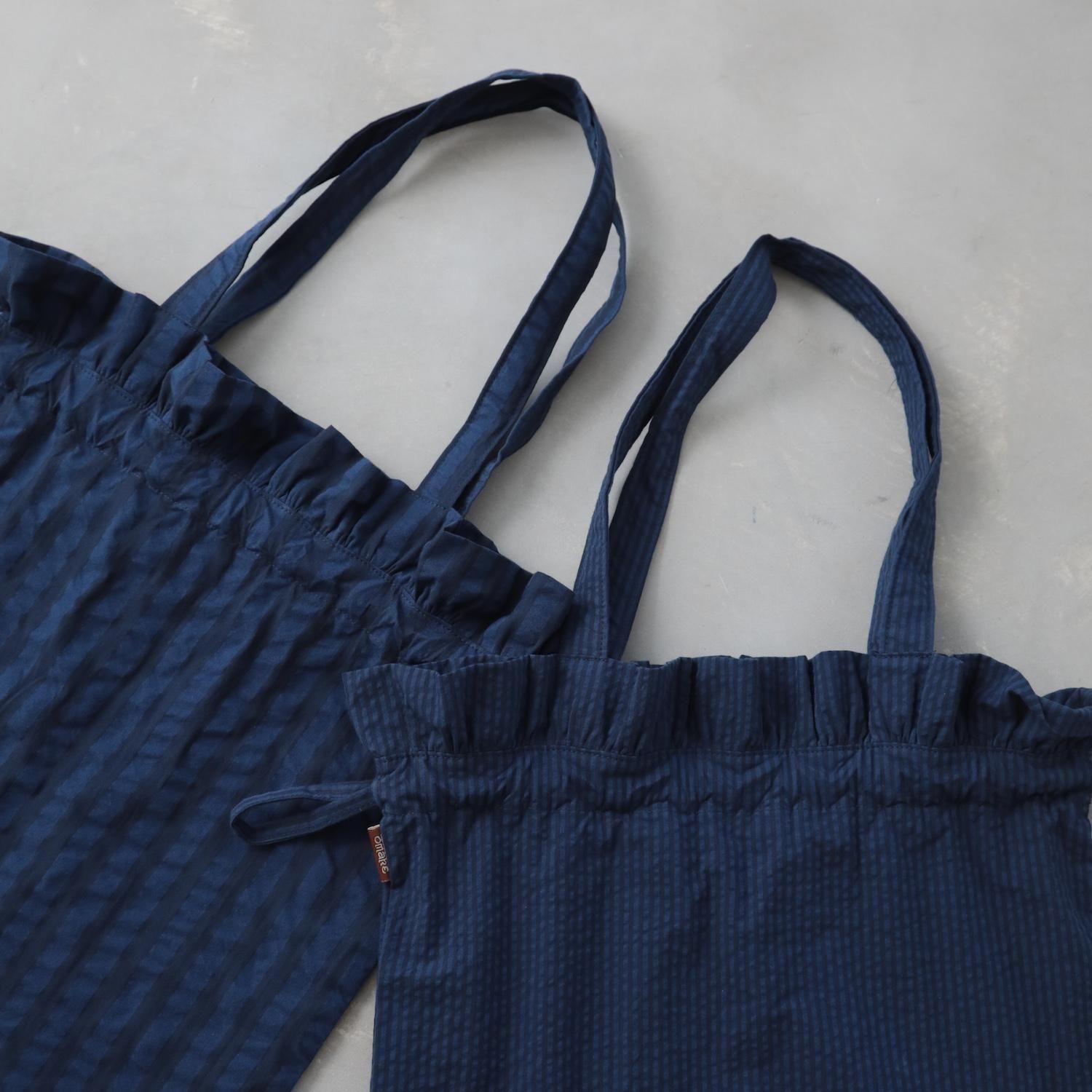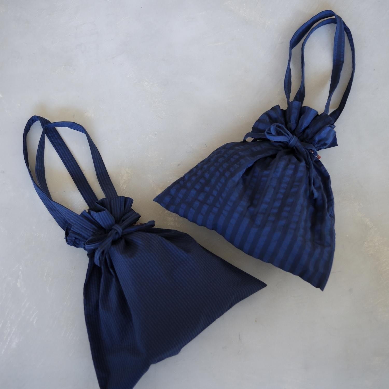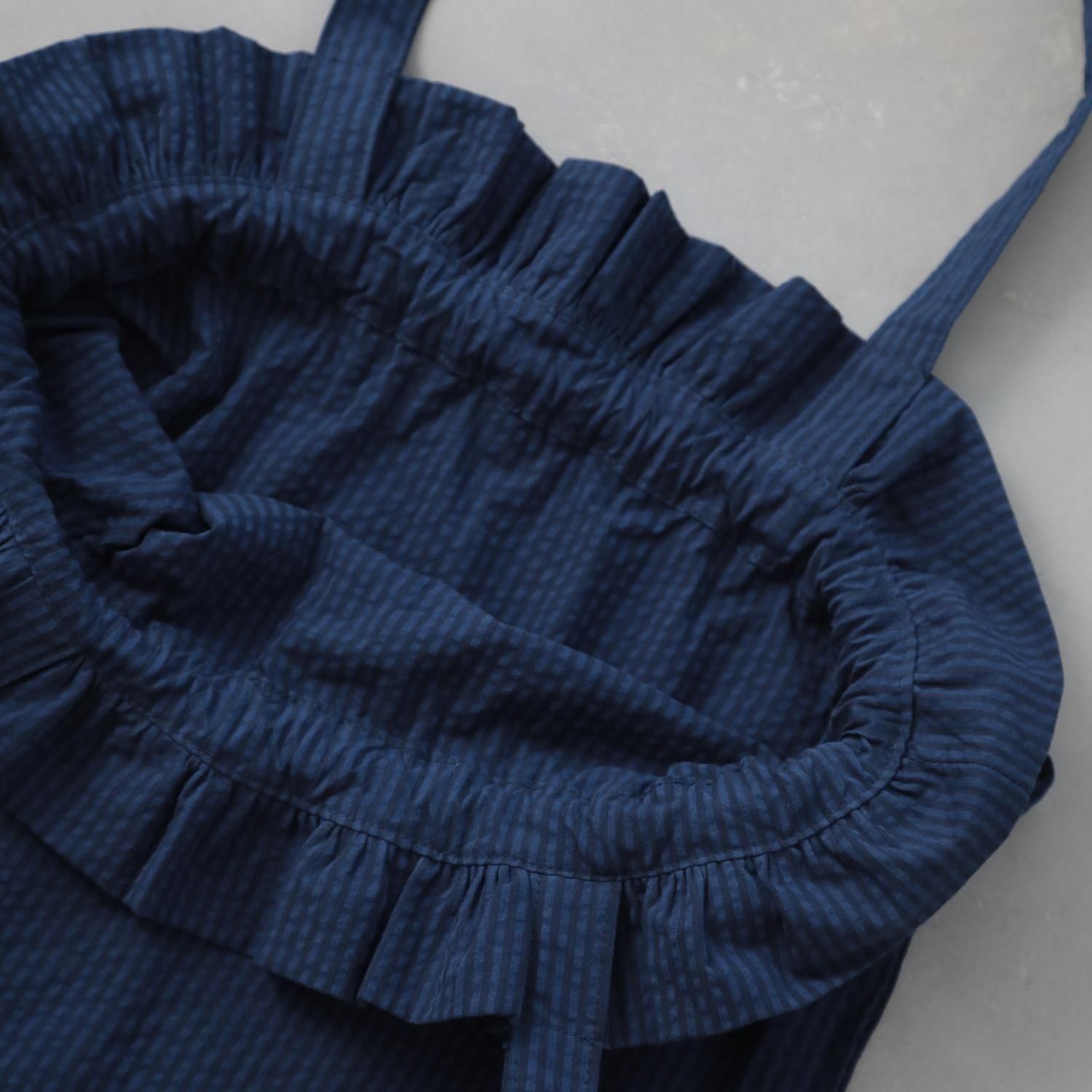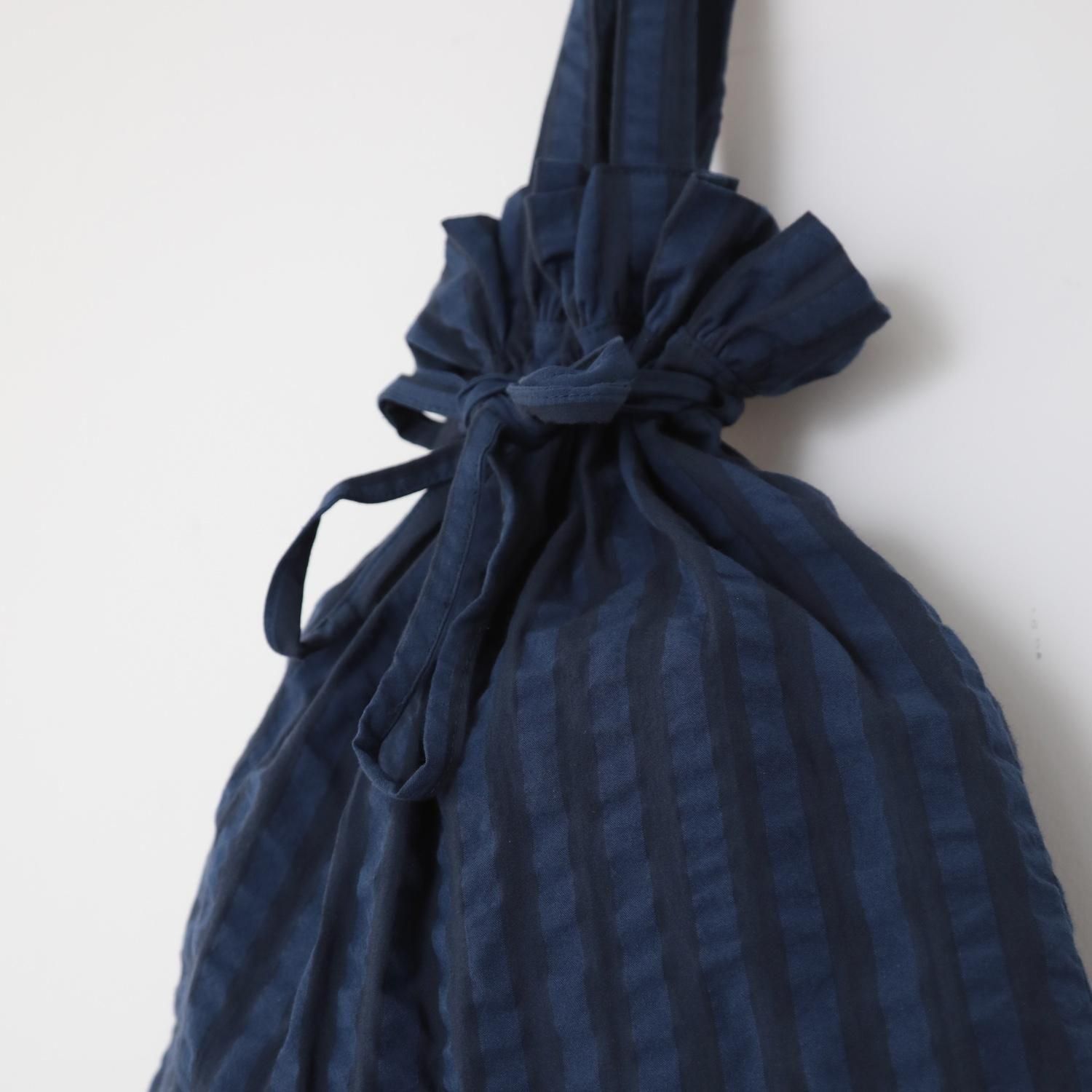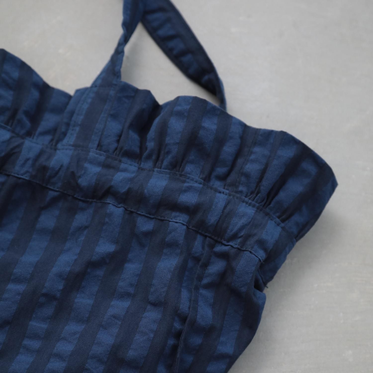 紺色のストライプ生地を使用し、落ち着いた雰囲気の中にかわいらしさを添えました。