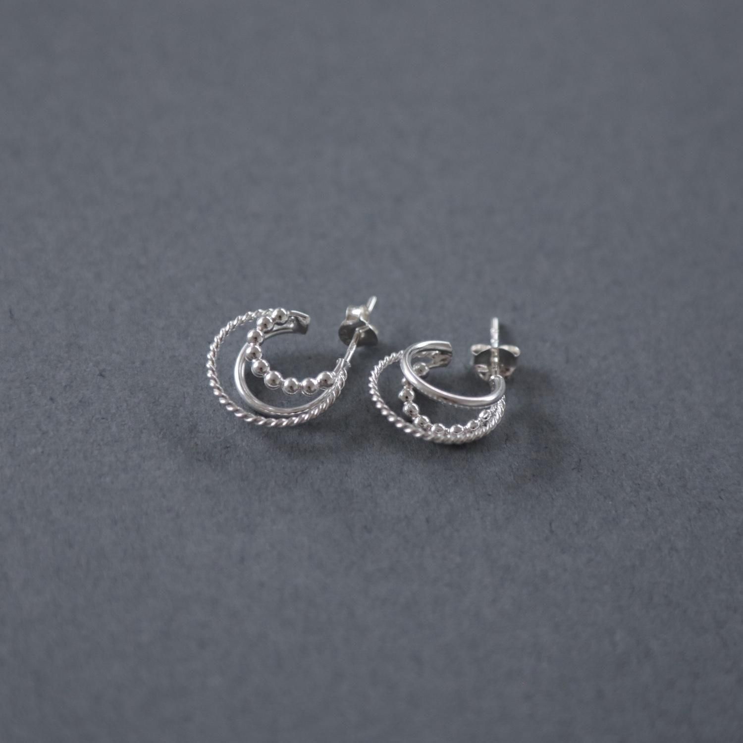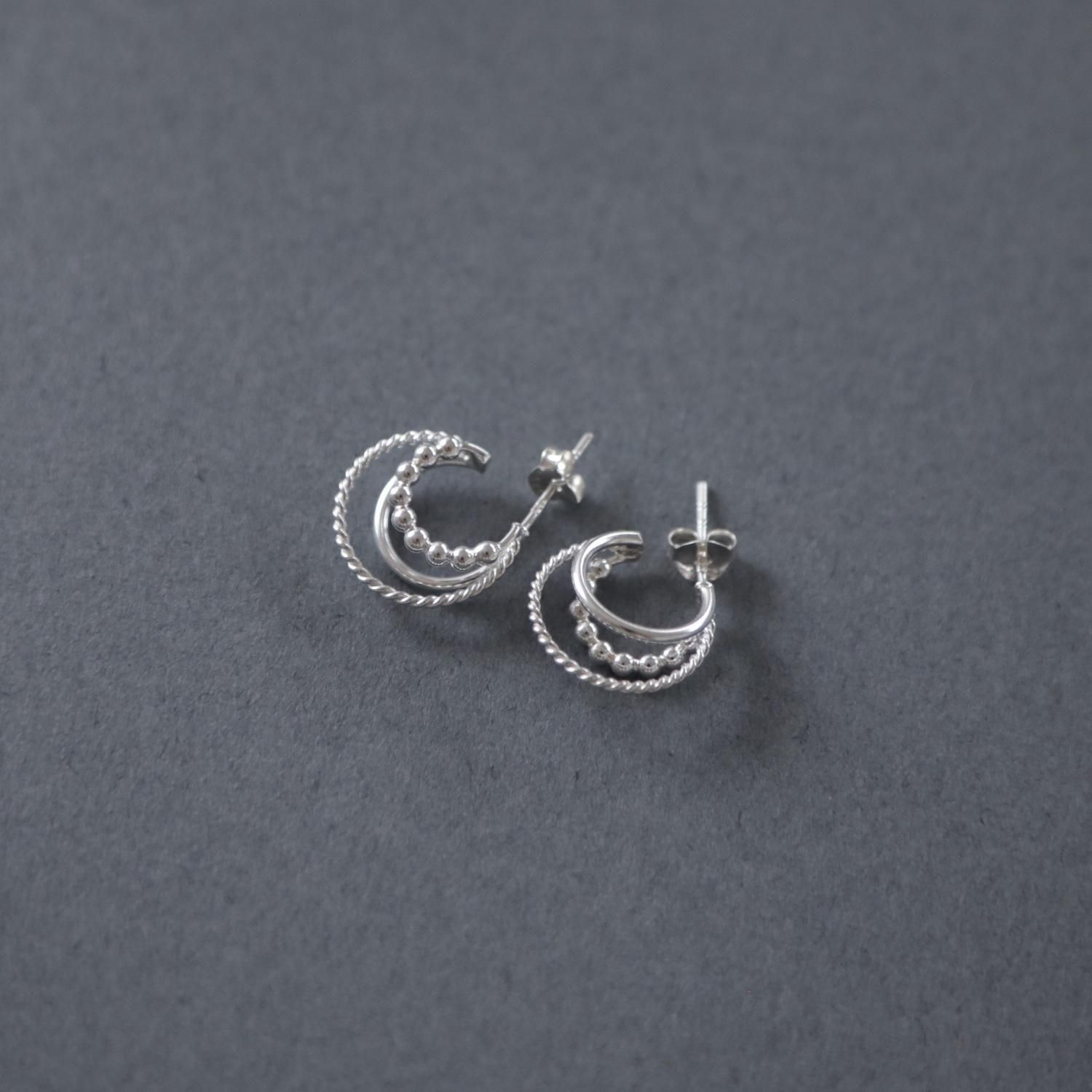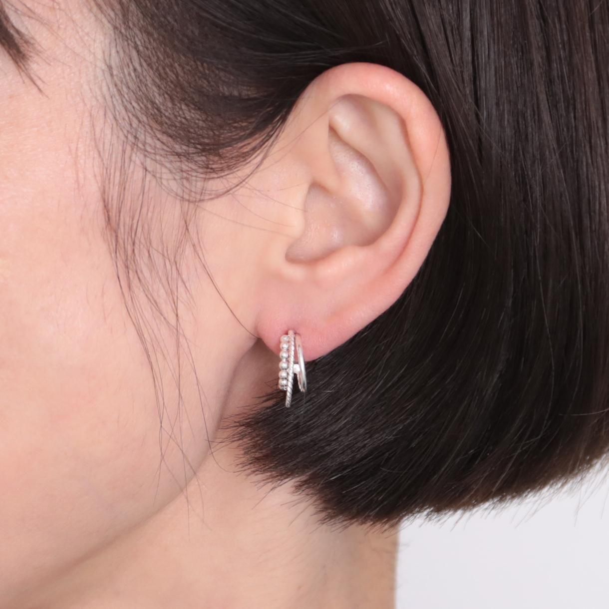 異なるデザインで形づくる、トリプルラインのフープピアス。